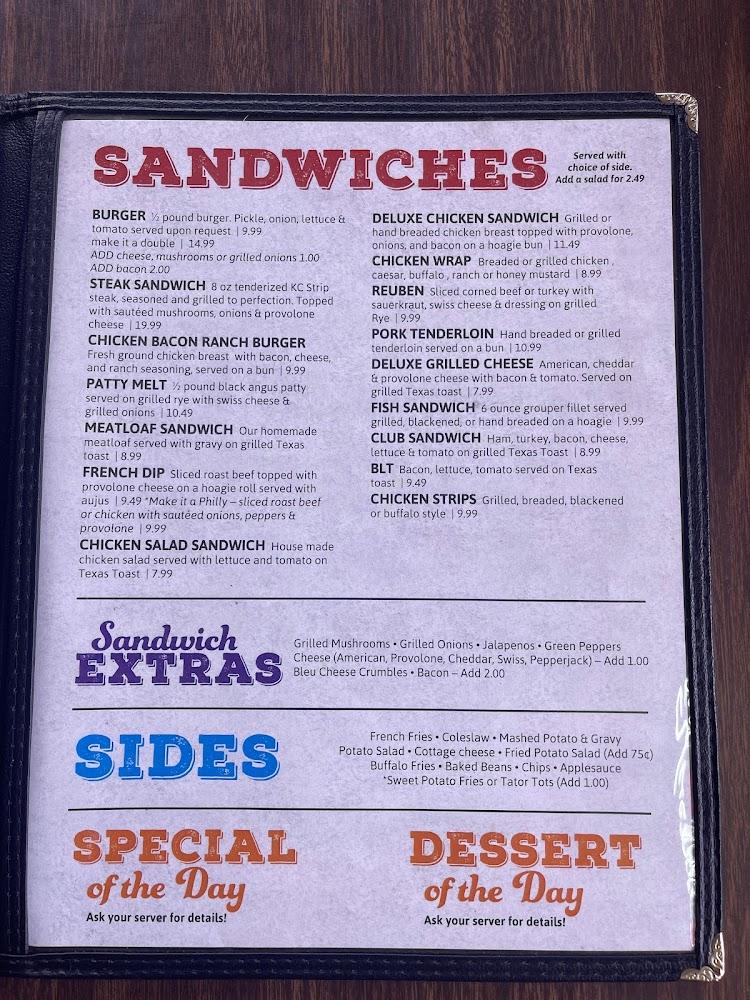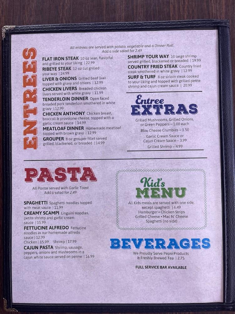 Vegetarians will find salads and pasta options to enjoy, including creamy scampi or hearty spaghetti. The kid's menu offers favorites like grilled cheese and chicken strips, ensuring even the youngest diners are happy.